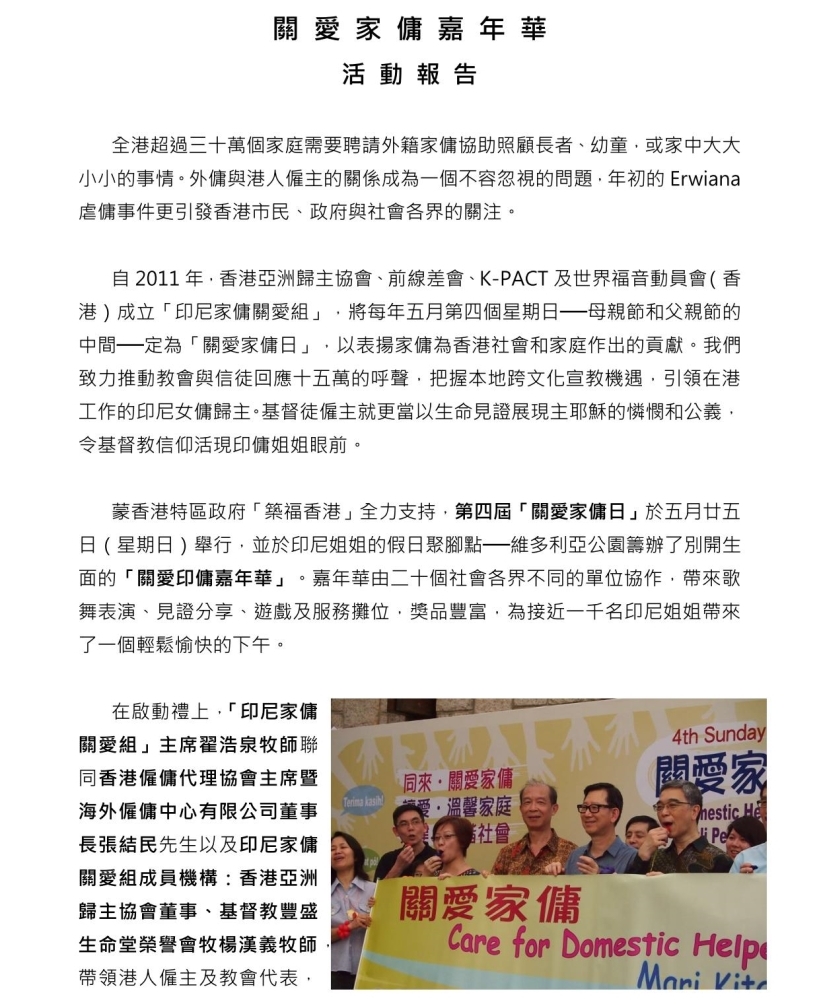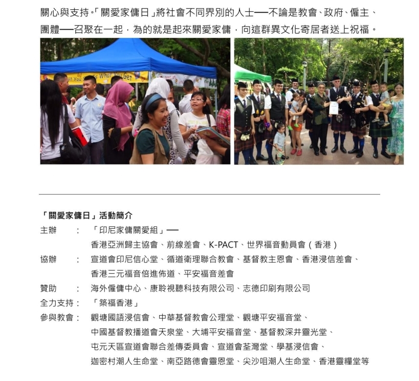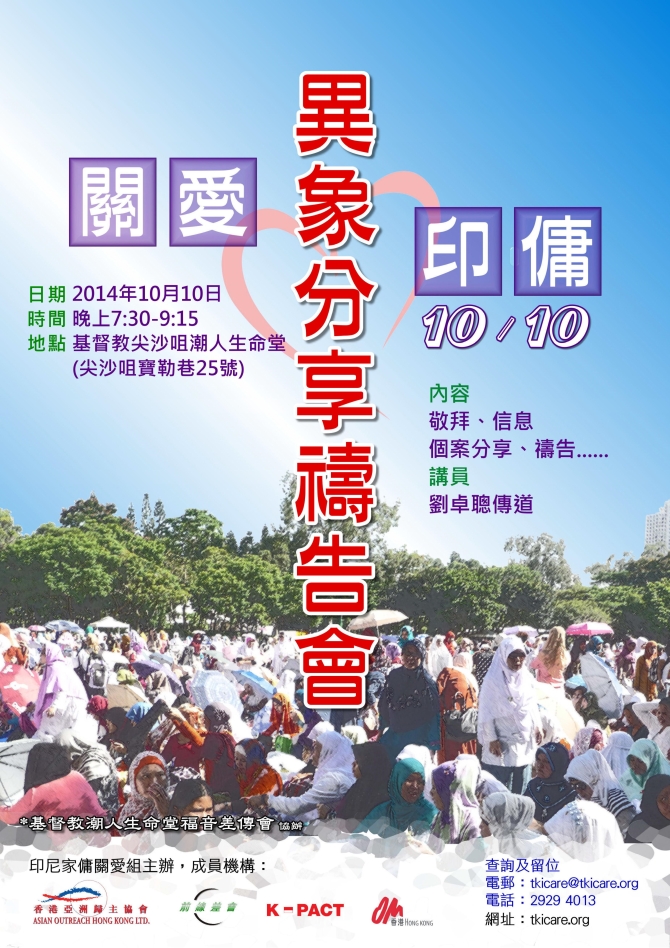 為匯聚並善用事工資源,印尼家傭關愛組新設"資源分享"網上平台,歡迎各教會或信徒就可分享之資源(如:物資、聚會地方、書籍、影音等)與本組聯絡。我們將放上本網頁之"資源分享"專頁。查詢及詳情,請聯絡本組秘書處(2929 4013 / tkicare@tkicare.org)。願上主祝福使用!