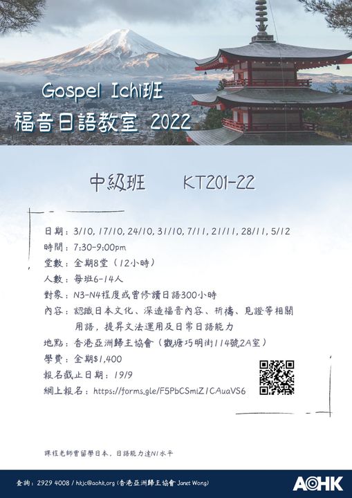 若你想好好利用留港時間裝備自己福音日語,歡迎報名參加此課程: