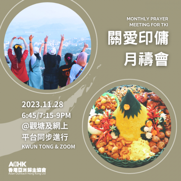 本月月禱會將提供實體和網上形式,大會將預備適量印尼食物,也歡迎大家帶食物來分享,故請盡早報名,方便預算份量。