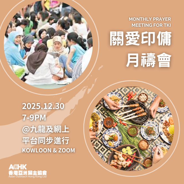 “Let the message of Christ dwell among you richly as you teach and admonish one another with all wisdom through psalms, hymns, and songs from the Spirit, singing to God with gratitude in your hearts.” (Colossians 3:16)Come join “Monthly Prayer Meeting for TKI” on December 30 (Tuesday) to count His blessings in 2025. We’ll also pray for the Indonesians affected by the Taipo fire and flood in SE Asia.
