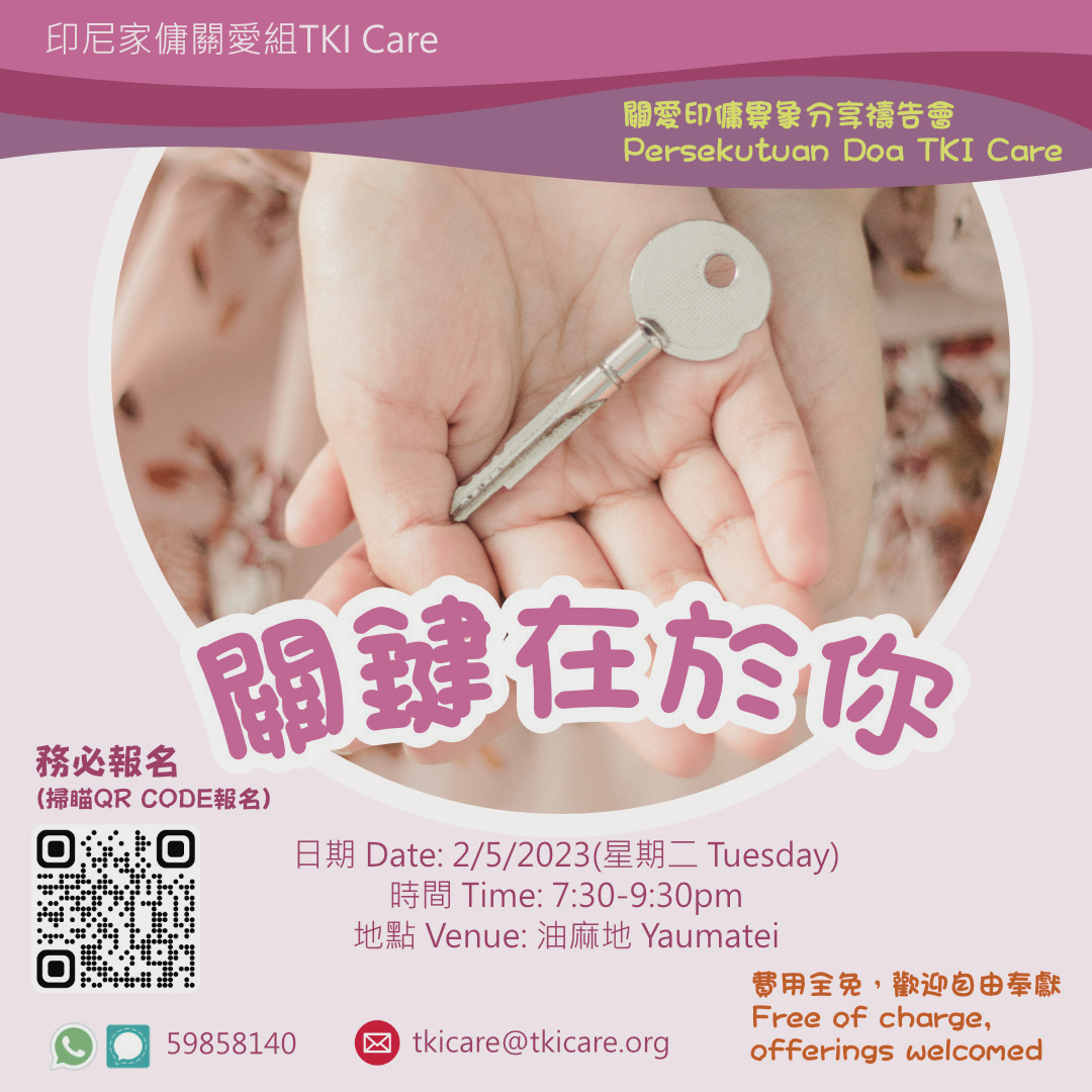 由香港亞協及其他成員機構組成之印尼家傭關愛組年度聚會—關愛印傭異象分享禱告會,今年將主題訂為《關鍵在於你》。 誠邀全港華人堂會和信徒,同心領受異象,同來為救恩臨到本港印傭禱告。 Spearheaded by AOHK and other [...]