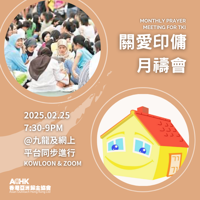 二月「關愛印傭月禱會」 誠邀參與香港亞協「關愛印傭月禱會」: 日期:2025 年 2 月 25 日(星期二) [...]